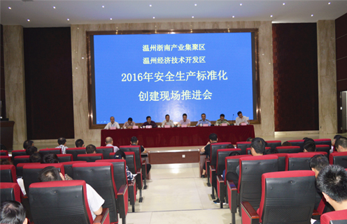 近日,溫州浙南產(chǎn)業(yè)集聚區(qū)、溫州經(jīng)濟(jì)技術(shù)開發(fā)區(qū)在溫州宏豐大禮堂召開2016年安全生產(chǎn)標(biāo)準(zhǔn)化創(chuàng)建現(xiàn)場推進(jìn)會。市安監(jiān)局黨委副書記、副局長徐偉中,經(jīng)開區(qū)黨委委員、管委會副主任金旭東,經(jīng)開區(qū)安監(jiān)局局長焦連華,經(jīng)開區(qū)公安分局副局長盧文亮,市消防大隊政委張建星,經(jīng)開區(qū)質(zhì)監(jiān)分局副局長翁韌平,經(jīng)開區(qū)安監(jiān)局副局長鄭圣潔,經(jīng)開區(qū)四個街道辦和數(shù)百家企業(yè)的代表參加了本次會議。